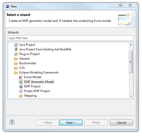 Use the Empty EMF Project New Wizard to create an initial project for your model: