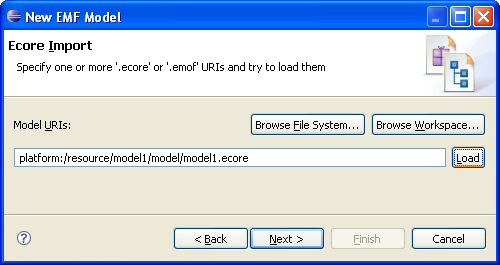 On the next page, the Ecore Import page, click the Load button: